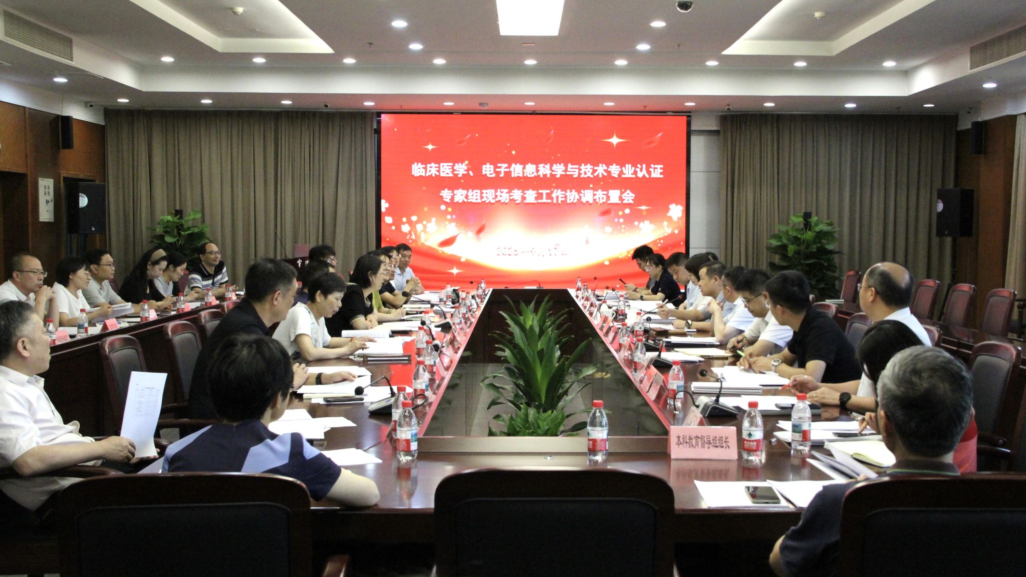 医学部负责人介绍了临床医学专业认证概况、学校进展及现场考查日程,并对相关部门工作任务和培训手册做了说明。信息学院相关负责人汇报了信息学院工程教育认证进展、电子信息科学与技术专业的认证概况、目前准备情况及需要学校配合事项。与会人员围绕两个专业的认证现场考查工作日程表和任务分工表进行讨论并提出优化建议。