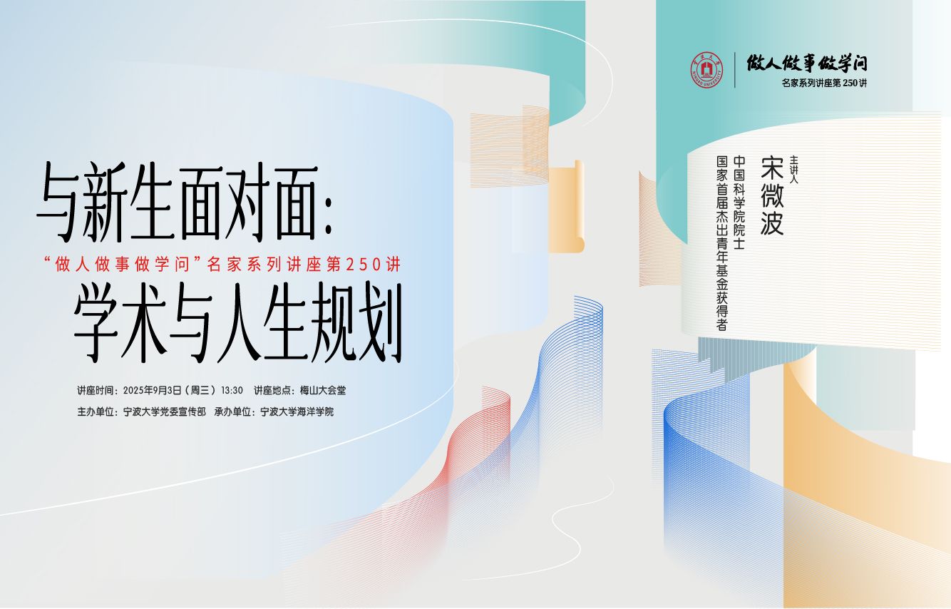 应学校邀请,中国科学院院士、国家首届杰出青年基金获得者宋微波即将来校主讲“做人做事做学问”名家系列讲座第250讲。